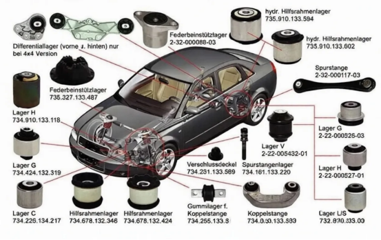 2. エンジンマウント:エンジンマウントに使用されているゴムブッシュは、エンジンの振動を効果的に遮断し、キャビンに伝わる騒音や不快感を最小限に抑えます。
